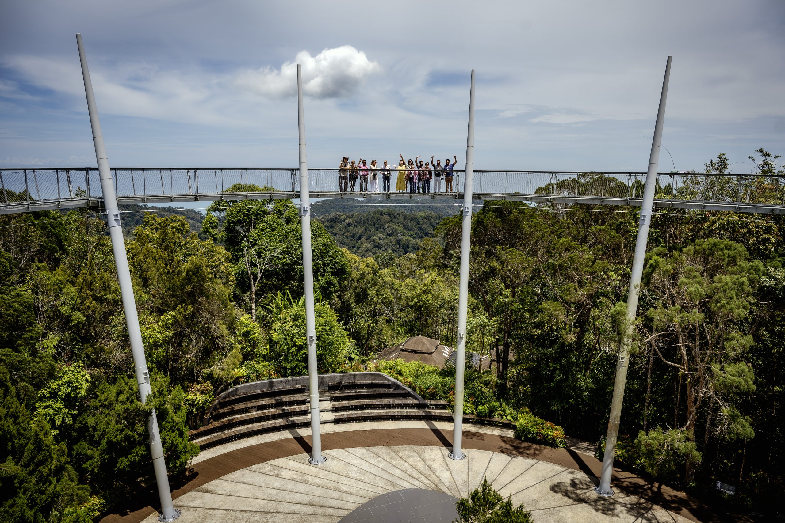 Our journey across the island began in the tranquil ‘theme park’ of Kampung Agong, an idyllic team building site where time seems to slow and the rhythm of rural life hums gently in the background. From there, we rose above the treetops aboard the funicular railway to Penang Hill, where the elegant Edgecliff Gallery designed by the Scottish architect J.C. Miller as a private bungalow was hidden, framed by cool mountain air and sweeping views of the city below.