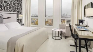 The building itself is worth a mention before you even get inside. Designed by Maccreanor Lavington Architects and completed in 2009, it won a RIBA award and has since become something of a reference point for mid-rise brick architecture in London. It’s a contemporary building, but one that sits thoughtfully in its Georgian surroundings rather than ignoring them. Part of the Spanish H10 Hotels group, the property has recently undergone a renovation, and across 177 rooms the feel is modern and considered, with large picture windows, wooden floors and city views that get considerably better the higher up you go.