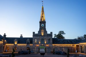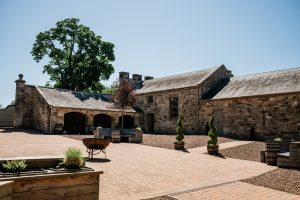 The central courtyard ties everything together. It works well for arrival drinks, outdoor receptions and informal time between sessions, and with heated seating, cart sheds, stretch tents and a firepit available, it stays usable whatever the Scottish weather decides to do.